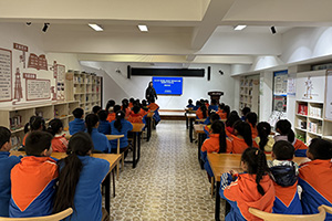 启动仪式上,图书馆与自贡市育才学校、贡井区青杠林小学签订了共建教育基地合作协议书,共同在阅读推广、志愿服务、传统文化弘扬等方面展开合作。随后,育才学校老师在综合阅览室开展了第一场“阅无限·向未来”馆校合作主题暨公井读书会活动。活动现场,老师充分发挥馆内资源优势,为同学们讲述绘本故事、进行阅读辅导。同学们认真聆听、积极互动、畅谈感悟,新编故事结局,活动趣味盎然,大家在活动中体会到了阅读的快乐。